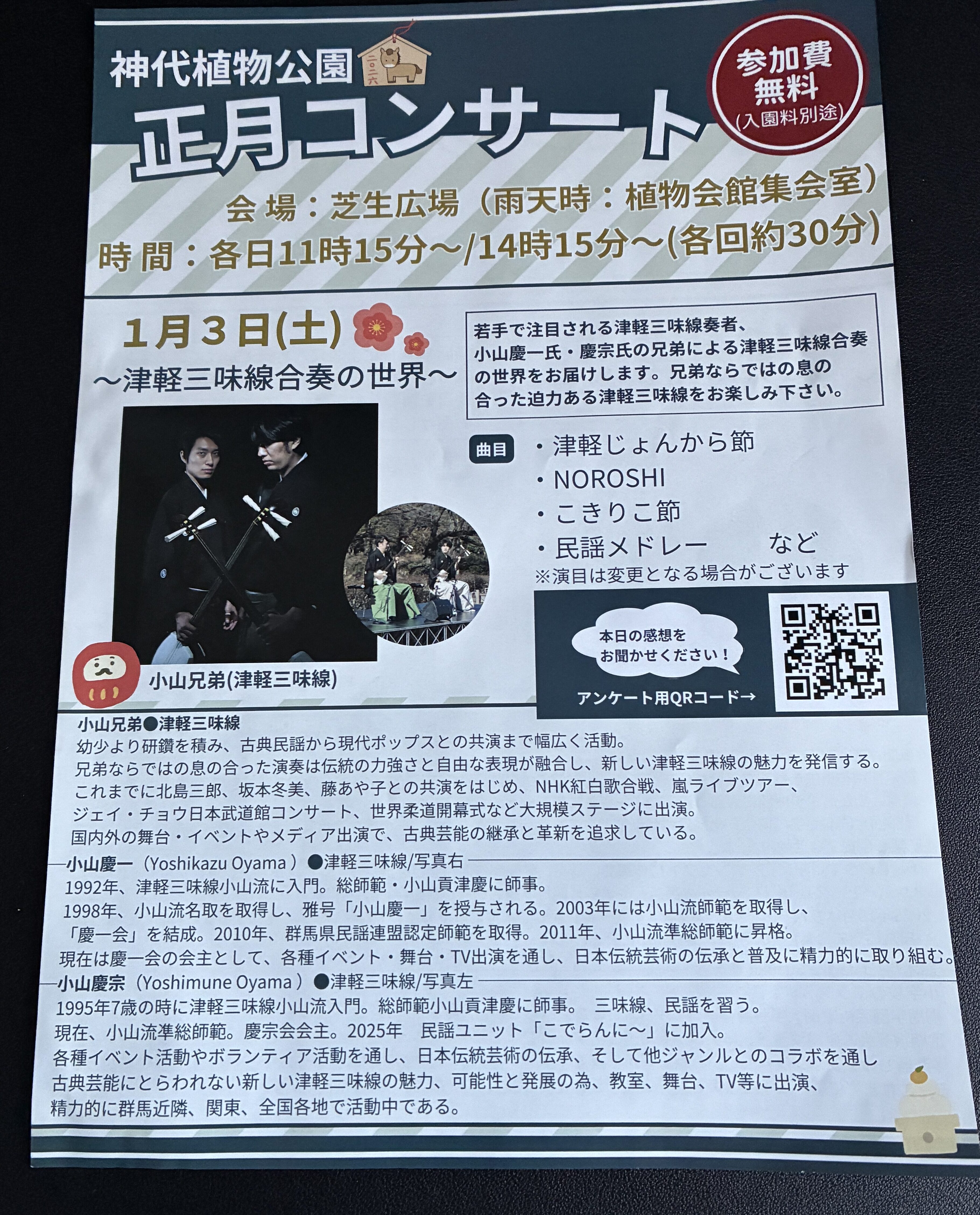 帰宅後、小山兄弟についてググってみたのですが、津軽三味線では「有名な兄弟」のようです。