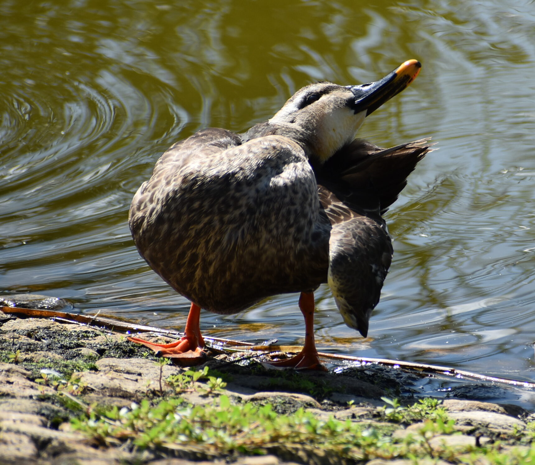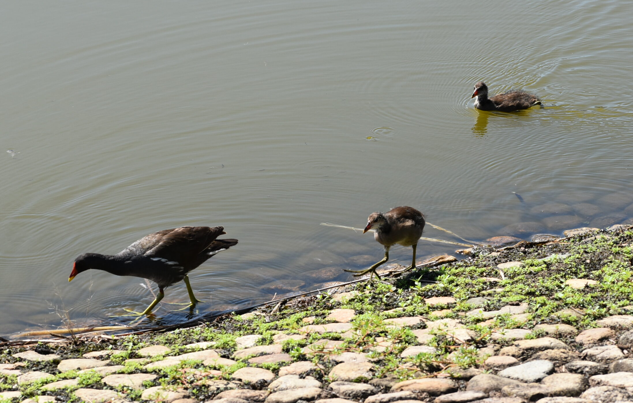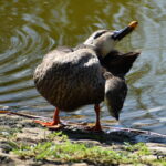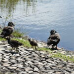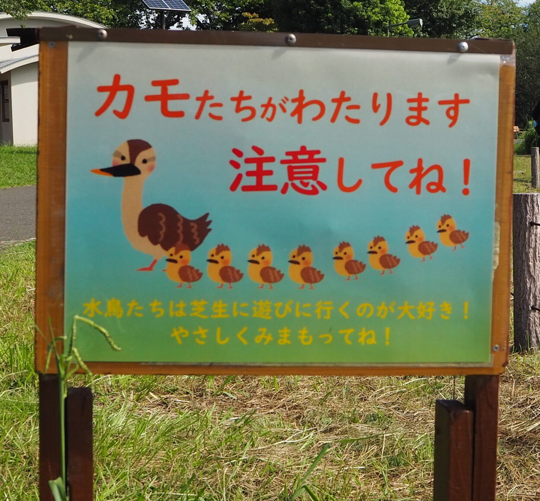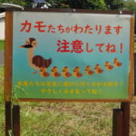 「カルガモさん、後ろを失礼しまーす。」